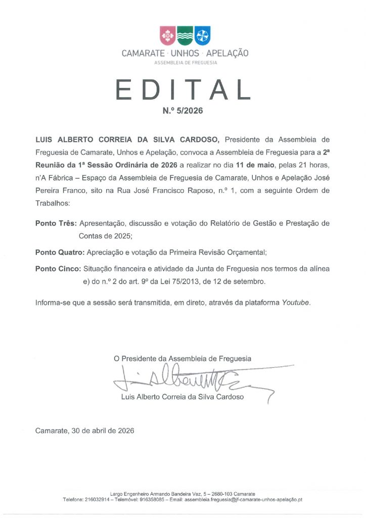 Assembleia de Freguesia 11 Maio 2026 30 Abril, 2026 por jfcua em Assembleia de Freguesia, Divulgação, União de Freguesias